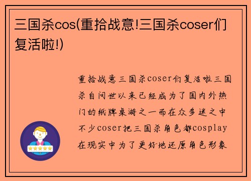 三国杀程普(重制三国杀,再掀热血战局)