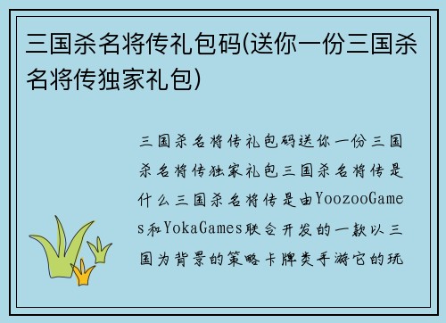 三国杀程普——再掀热血战局三国杀作为一款中国人熟知的桌游,在各类游戏平台均有着众多玩家。然而,多年来的版本更新已让游戏经历了不同的变革和演变,体验方式和玩法难免会产生疲劳。凭借AMC游戏工作室的精心打...